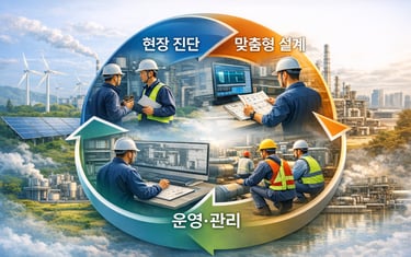 환경 및 산업안전 전반에 걸친 전문 인력과 축적된 기술 역량을 바탕으로, 현장 진단부터 맞춤형 설계, 시스템 구축, 안정적인 운영·관리까지 전 과정을 아우르는 종합적인 기술 서비스를 제공합니다