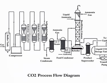 산업 생산 엔지니어링에서 재활용 가능한 CO2는 화학 산업 배기 가스, 보일러 가스, 석탄 가스화, 가축 및 가금류 생물 가스 등 다양한 산업용 배기 가스에서 얻을 수 있습니다. CO2 함량은 소스에 따라 다릅니다. 화학 산업 배출량은 일반적으로 CO2 함량이 약 10%~30%, 보일러 플라그 가스 함량이 약 8%~15%, 가축 및 가금류 바이오가스 약 20%~40%(다양한 생물학적 가스량의 CO2 함량은 다름).