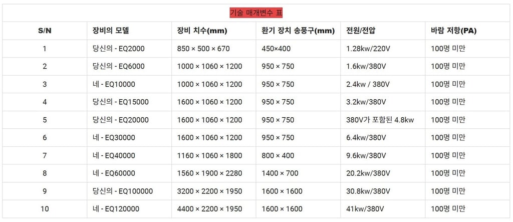 4.이 장비는 점유 면적이 작고 무게가 가벼워 소규모 설치 및 제한된 작업 현장에 적합하며 최대 160,000 m³/h의 공기량을 처리할 수 있습니다